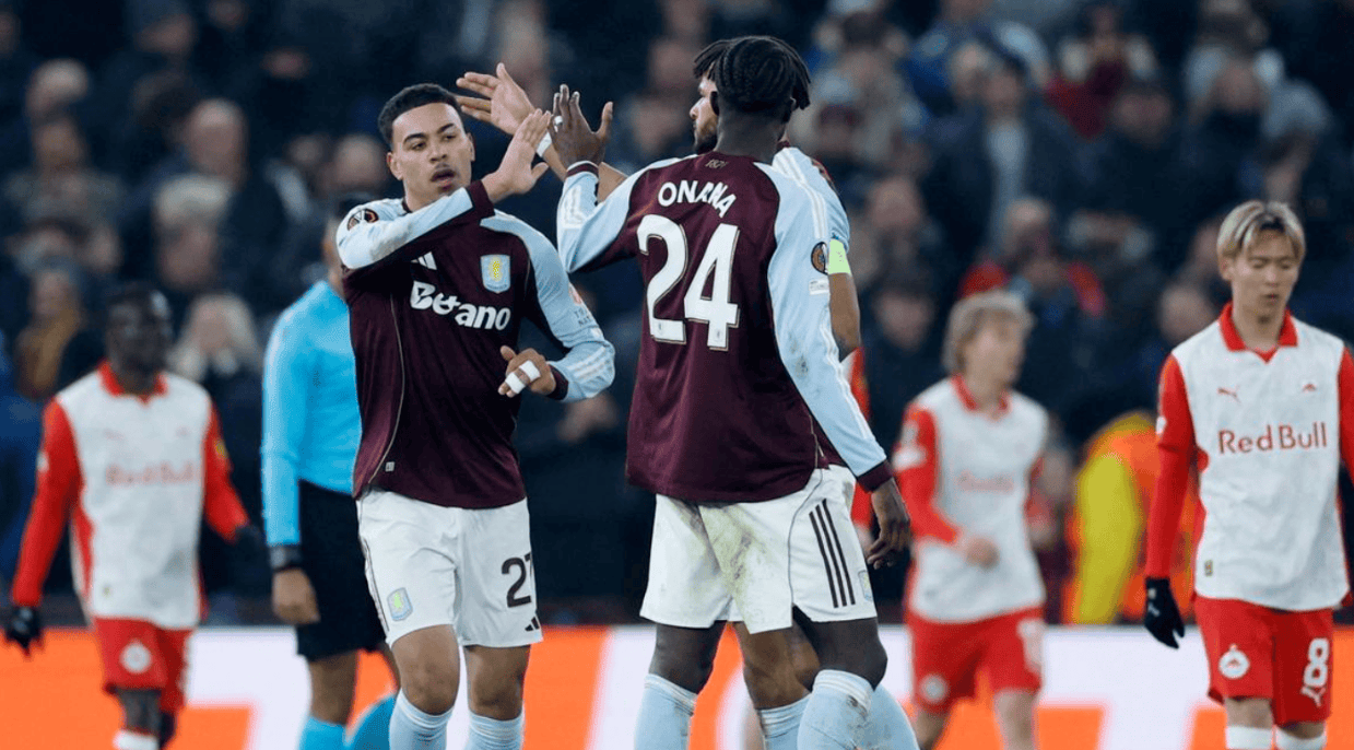 欧联杯联赛阶段第8轮的一场比赛展开争夺,阿斯顿维拉在主场迎战萨尔茨堡红牛。阿斯顿维拉在联赛战绩很出色,23场联赛取得14胜4平5负的成绩,排名第3,只落后榜首的阿森纳4分,有争冠的希望。在欧联杯,阿斯顿维拉的成绩也很亮眼,前7场小组赛6胜1负,已经提前晋级淘汰赛。如今迎来欧联杯最后一轮小组赛,阿斯顿维拉创造奇迹,让二追三,逆转击败萨尔茨堡红牛。